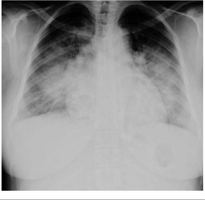 Alice, a 20-year old female with no significant past medical history is brought in by ambulance with worsening upper abdominal pain onset 1 week ago when she woke up. She has felt nauseous and has vomited one time this morning. Two days ago, she began to feel short of breath. She states that it has been getting worse and she is now having trouble lying flat. She was hypertensive with EMS.