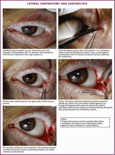 - Mahon, B. M., & Desai, B. K. (2016). Lateral Canthotomy. Atlas of Emergency Medicine Procedures, 305-308. doi:10.1007/978-1-4939-2507-0_52